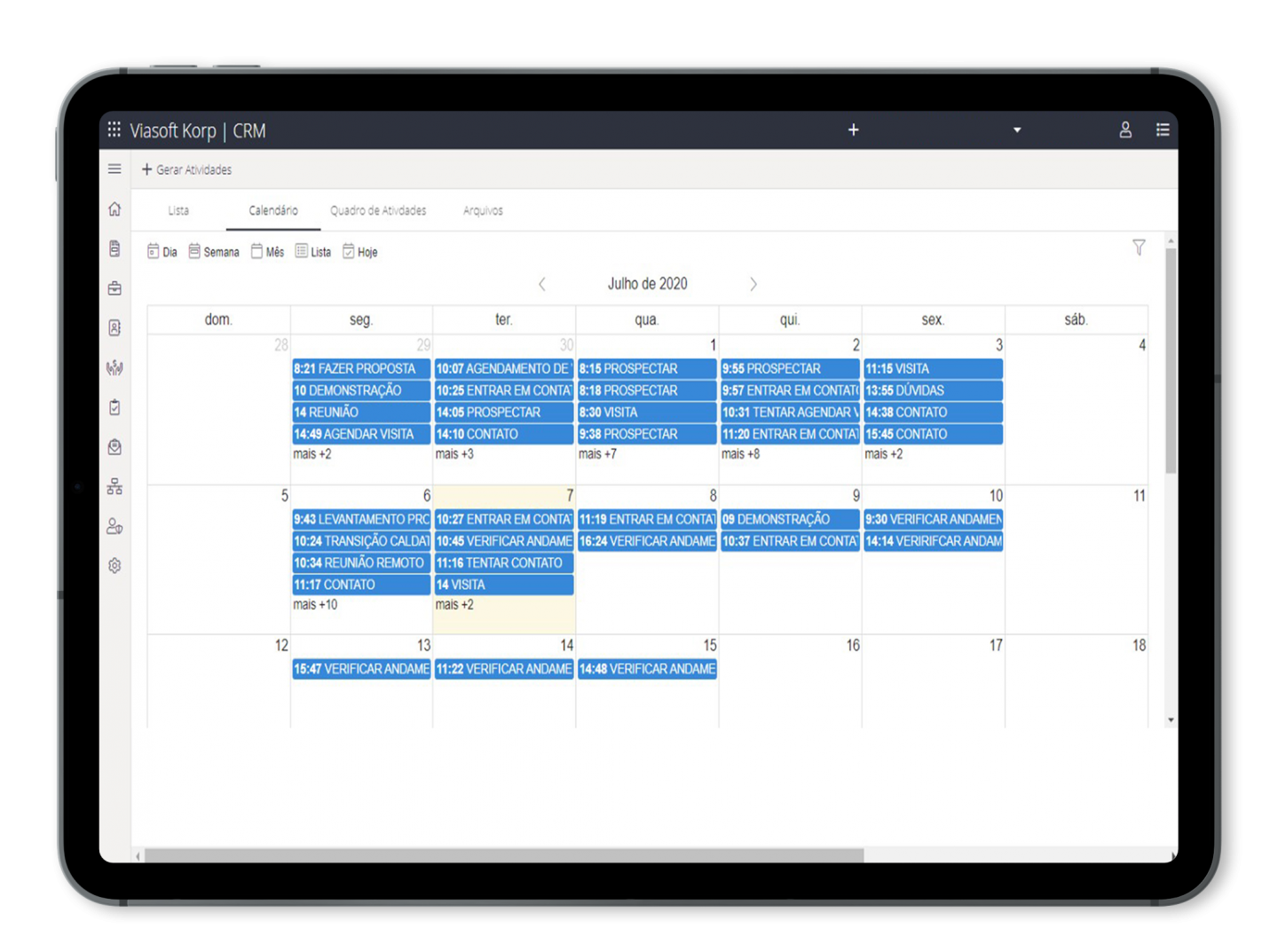 Agende todas as atividades, sejam tarefas, compromissos, e-mails, retornos ou ligações e mantenha históricos. Controle o número de atividades diárias, semanais e mensais.
